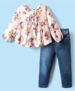 Babyhug Rayon Knit Full Sleever Print Top And pant set little Girl Combo Set Buy online | Trezz.in