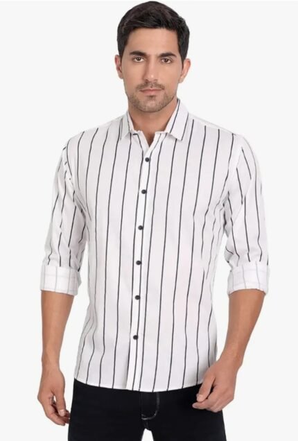 By Trezz Zara White Striped Slim Fit Cotton Shirt for Men & Women – Casual Unisex Style | Trezz Fash ion