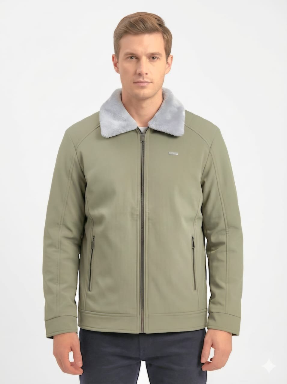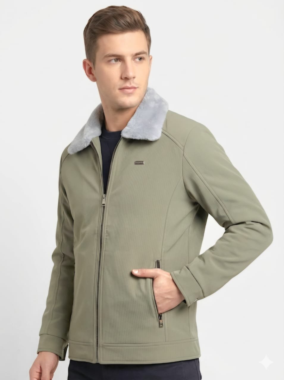 Men’s Green Fur Collar Winter Korean Jacket