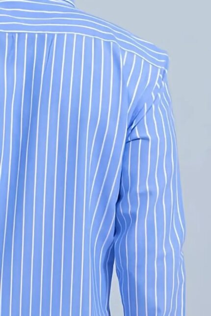 Mens Blue Striped Check Cotton Silm Fit Casual Shirt