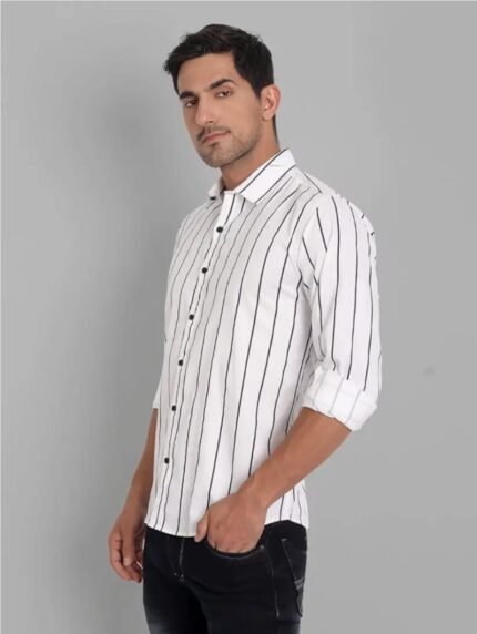 By Trezz Zara White Striped Slim Fit Cotton Shirt for Men & Women – Casual Unisex Style | Trezz Fash ion