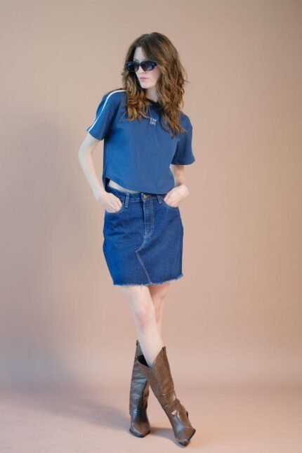 Cotton Stretch Blue Varsity Casual Tee Top By trezz.in