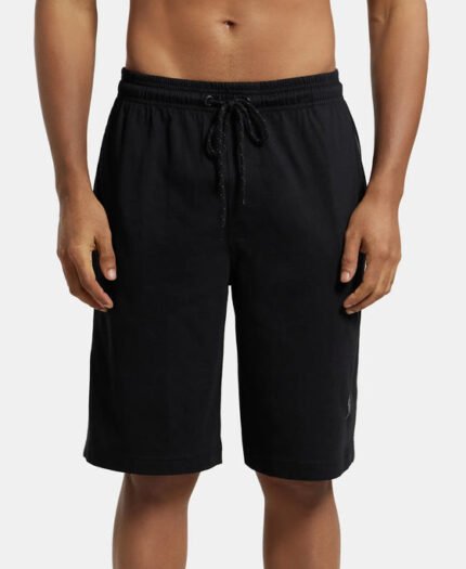 Men’s Super Combed Cotton Rich Regular Fit Shorts with Side Pockets – Black